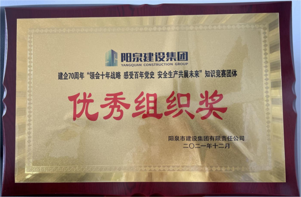 2021年12月 阳泉市建设集团有限公司授予:建企70周年主题征文 优秀组织奖